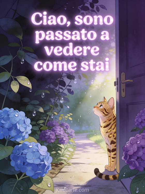 Invia un premuroso ciao, sono passato a vedere come stai per dimostrare che pensi a qualcuno. Scopri anche un biglietto con come stai tesoro, con sto bene grazie o con ciao come stai.