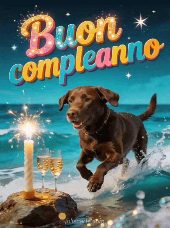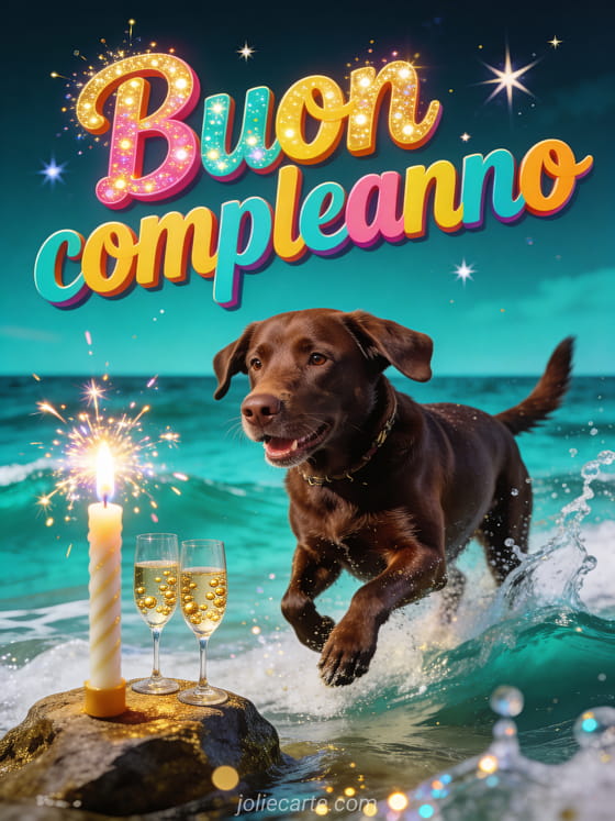 Invia un caloroso augurio di buon compleanno con questo biglietto gratuito. Un labrador che gioca sulla spiaggia, champagne e sparkler per un'occasione speciale. Scopri anche un biglietto di compleanno per adolescenti o un biglietto di compleanno per ragazza.
