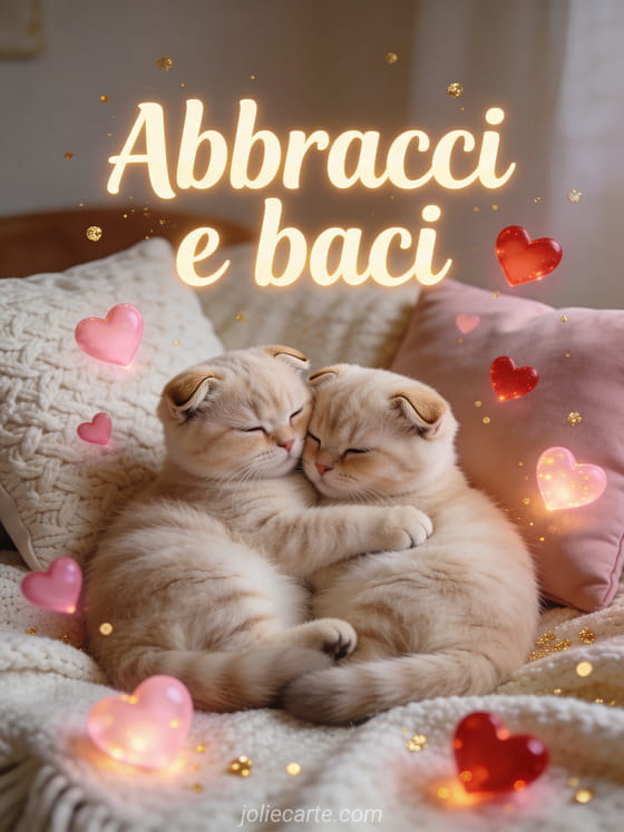 Condividi dolci abbracci e baci con il tuo partner con questa adorabile cartolina. Scopri anche baci innamorati immagini, baci amore mio gif o foto d'amore baci.
