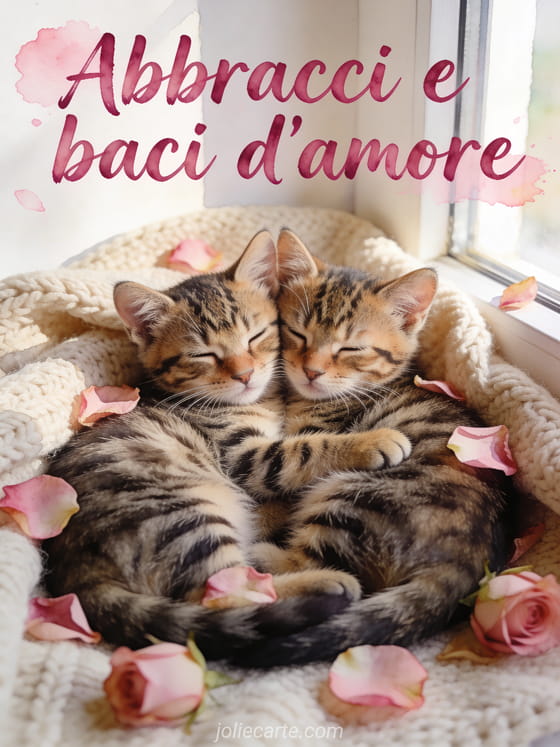 Esprimi il tuo amore con questa tenera cartolina di abbracci e baci. Scopri anche una cartolina di poesia baci o una cartolina di messaggio baci.