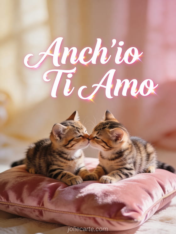 Invia questo adorabile biglietto con due gattini tigrati che si strofinano teneramente il naso su un cuscino di velluto rosa. Scopri anche un biglietto ti amo all'infinito o un biglietto ti amo tanto tanto tanto.