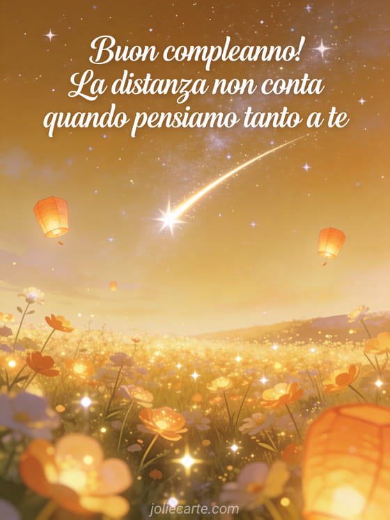 Buon compleanno! La distanza non conta quando pensiamo tanto a te Un messaggio di compleanno poetico e affettuoso per restare vicini con il cuore.