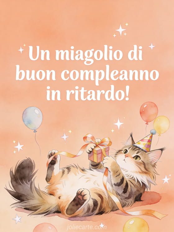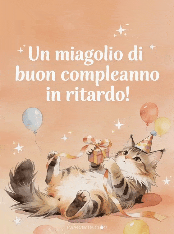 Scusati per un compleanno dimenticato con questo adorabile biglietto di auguri in ritardo con gatto pieno di tenerezza. Scopri anche una card augurare buon compleanno in ritardo, un gif auguri di compleanno in ritardo o un testo auguri compleanno in ritardo.