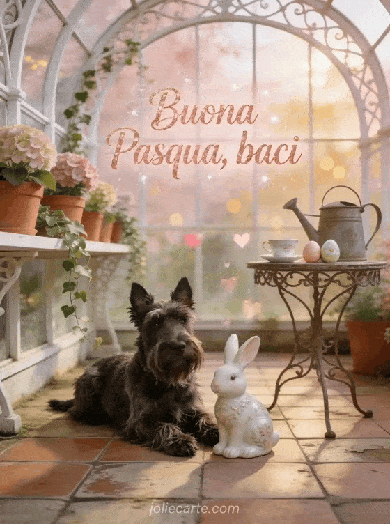 Baci buona Pasqua gif una tenera gif di Pasqua con baci in un'incantevole serra vittoriana