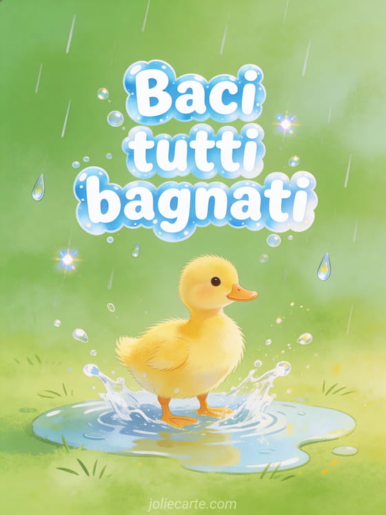 Manda allegri baci tutti bagnati con questo incantevole biglietto con un adorabile anatroccolo giallo che schizza in una pozzanghera. Scopri anche disegno ragazza baci o foca baci.