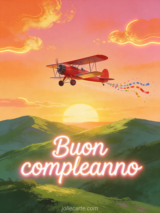 Buon compleanno Un augurio di compleanno avventuroso sotto un cielo caldo al tramonto.