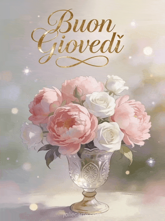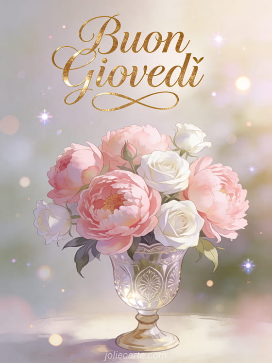 Bella cartolina buon giovedì una romantica e raffinata cartolina di buon giovedì con peonie rosa e rose bianche