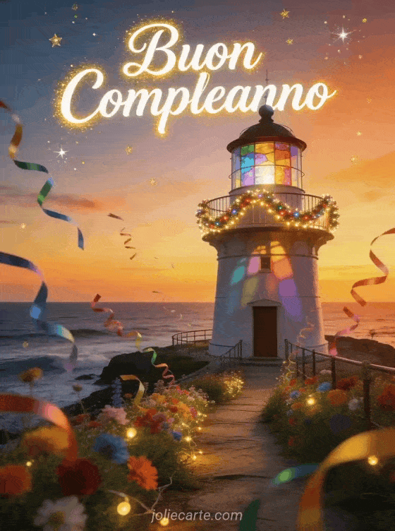 Augura buon compleanno con questo caloroso biglietto costiero con un faro al crepuscolo avvolto in luci festive e fiori selvatici colorati. Scopri anche un biglietto vintage di compleanno per lei o un biglietto divertente di compleanno per lei.
