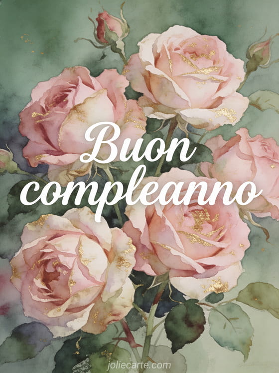 Condividi un augurio elegante di compleanno con scritte corsive bianche su rose antiche ad acquerello, tonalità rosa antico, verde salvia e dettagli dorati sottili per un'atmosfera romantica e vintage. Puoi inviare anche un biglietto di biglietto di compleanno donna gif, un biglietto di biglietto di compleanno donna gratis e animato o un biglietto di compleanno donna natura.