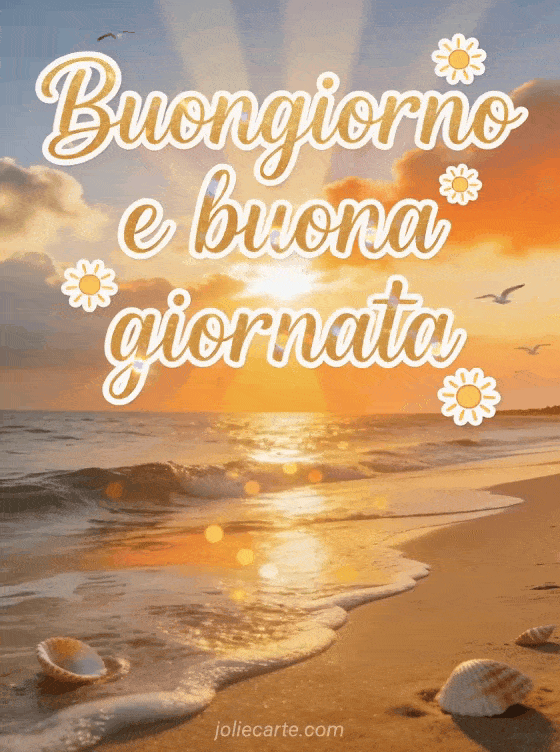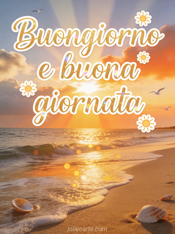Inizia la giornata con questo splendido biglietto con una spiaggia di sabbia all'alba, onde delicate, spettacolari raggi di sole e bokeh dorato sull'acqua. Scopri anche un biglietto virtuale di buongiorno o un biglietto di buona giornata con baci.