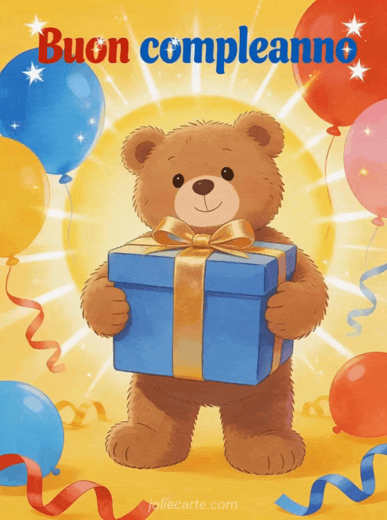 Invia un messaggio gioioso con questo biglietto luminoso pieno di palloncini, nastri e sorrisi. Puoi anche scoprire biglietto compleanno virtuale gratis bambino, biglietto compleanno bambino o biglietto compleanno bambina gratis.