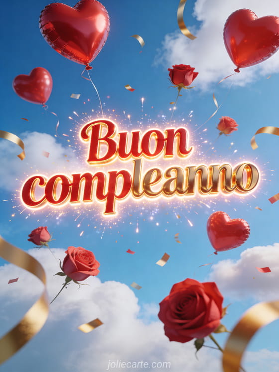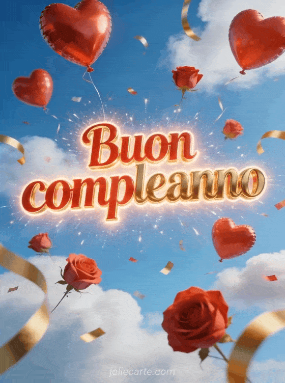 Invia questo festivo biglietto di compleanno gif animato con palloncini a forma di cuore rossi e rosa, nastri dorati e un'atmosfera allegra. Scopri anche il buon compleanno gif animato per donne o il buon compleanno animato mazzo di fiori.