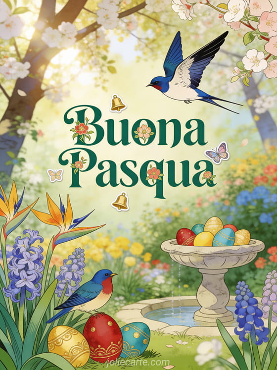 Festeggia con questo bellissimo biglietto animato che presenta un uccello. Invia questo messaggio di Buona Pasqua ai tuoi cari gratuitamente. Scopri anche Pasqua o Cartes bonnes fêtes de pâques.