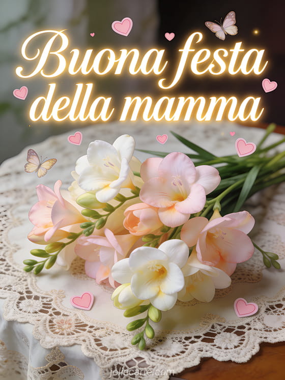 Sorprendi la tua mamma con questo bellissimo biglietto virtuale gratuito per la festa della mamma con eleganti fresie. Scopri anche un testo invito festa della mamma o un biglietti festa della mamma gratis.