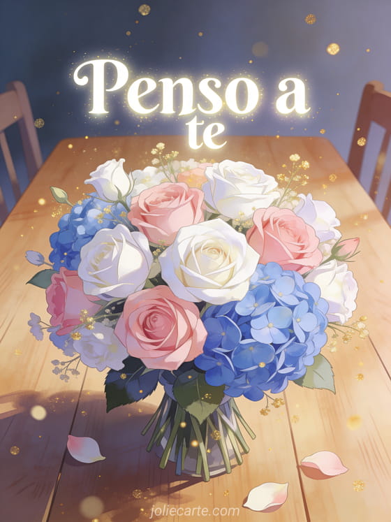 Condividi questo splendido biglietto con bouquet di fiori e il messaggio "Penso a te" per rendere speciale la giornata di qualcuno. Scopri anche stasera penso a te o immagini animate penso a te.