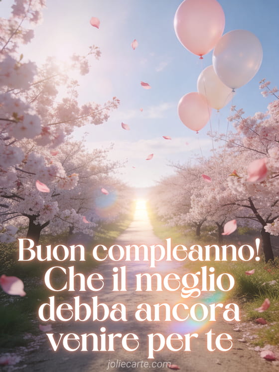 Invia un bellissimo breve augurio di compleanno con un paesaggio di ciliegi. Scopri anche una cartolina frase breve di compleanno o una cartolina vita amore sogno.