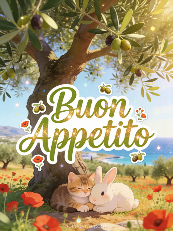 Augura a qualcuno un pasto delizioso con questo incantevole biglietto animato. Scopri anche foto buon appetito o una gif buon appetito per condividere il momento.