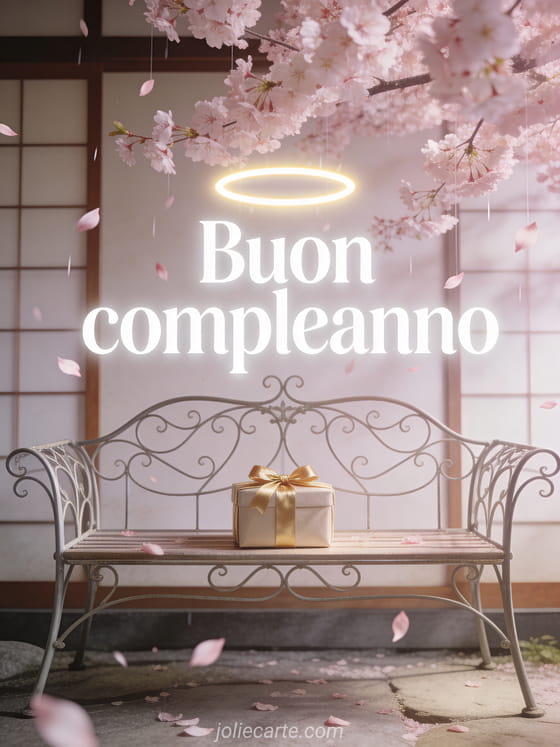 Invia questo buon compleanno animato gratis con un ciliegio in fiore con pioggia di petali e un regalo su una panchina in ferro battuto. Scopri anche un biglietto animato gratuito musicale di compleanno o un compleanno gif animato.