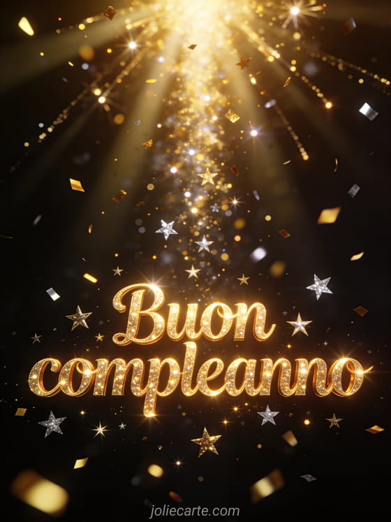 Condividi questo biglietto magico con lettere di glitter e stelle scintillanti ovunque. Scopri anche un biglietto buon compleanno candela o un biglietto buon compleanno immagine.