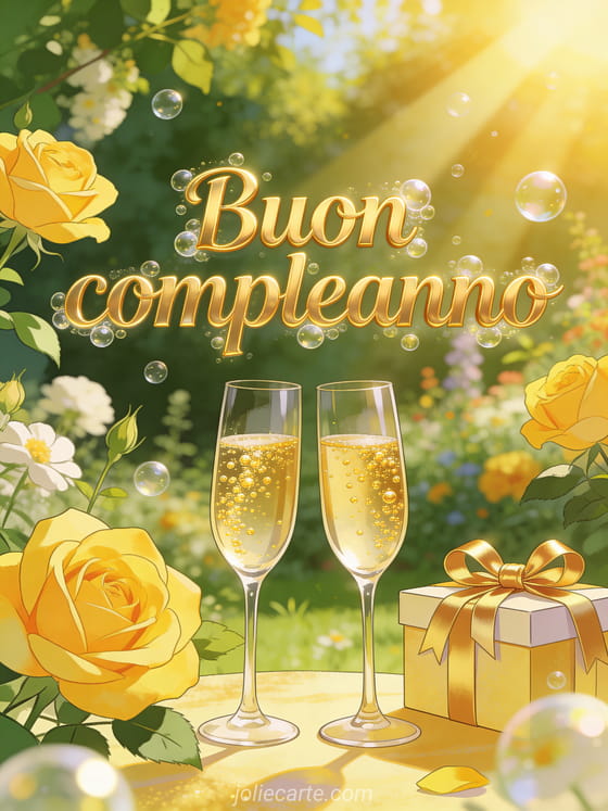 Invia un bellissimo biglietto di buon compleanno con champagne e fai brillare la giornata. Scopri anche un biglietto buon compleanno e buona giornata o un biglietto buon compleanno scintillante.