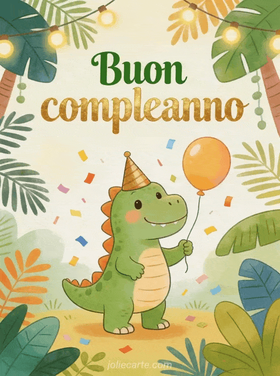 Rendi la festa più giocosa con questo biglietto di compleanno gioioso e la sua illustrazione di dinosauro spassoso. Scopri anche buon compleanno amica mia, buon compleanno gif gratis o buon compleanno rock n roll.