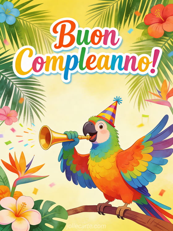 Sorprendi una donna speciale con questo divertente biglietto di compleanno con un pappagallo colorato che suona la trombetta. Scopri anche un biglietto di compleanno per donne o un biglietto di compleanno con immagini per donne.