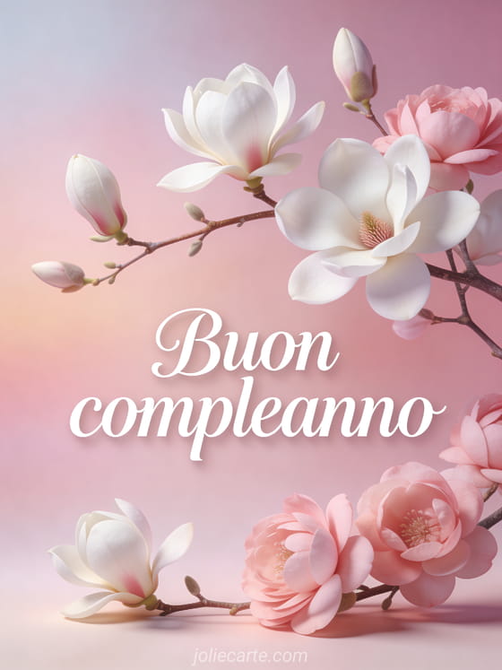 Deliziale con questo bellissimo biglietto di compleanno gratis con magnolie bianche e rosa su rami delicati. Scopri anche un biglietto compleanno amica donna o un buon compleanno donna con gatto.