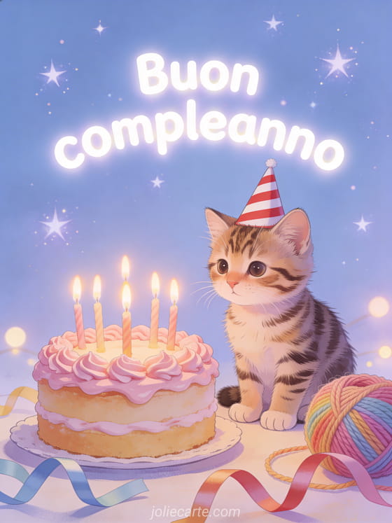 Festeggia il compleanno di un bambino con questo dolce biglietto con un adorabile gattino tigrato. Scopri anche un biglietto compleanno unicorno o un biglietto compleanno bebè.