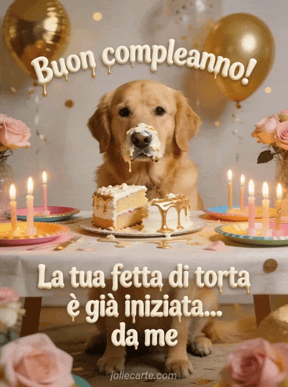Buon compleanno! La tua fetta di torta è già iniziata... da me una scena di compleanno simpatica con un cane adorabile