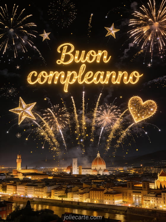 Stupiscili con questa spettacolare gif animata con fuochi d'artificio dorati che esplodono su una città illuminata di notte. Scopri anche una buon compleanno gif animato o una buon compleanno immagine animata.