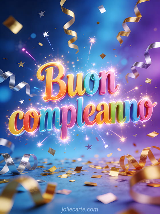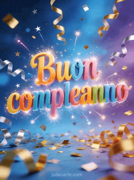 Porta atmosfera di festa con questo biglietto esuberante di compleanno pieno di coriandoli dorati, serpentini e stelle scintillanti su sfondo vivace. Scopri anche fiore buon compleanno fiori, immagine buon compleanno con fiori e buon compleanno musicale.