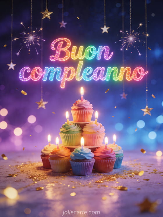 Rendi la festa ancora più luminosa con questo biglietto di compleanno colorato e fiabesco pieno di cupcake e candele. Scopri anche buon compleanno rock n roll, buon compleanno montagna o buon compleanno o buon compleanno.
