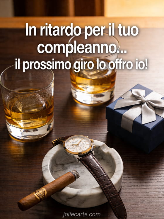 In ritardo per il tuo compleanno... il prossimo giro lo offro io! un augurio elegante di compleanno in ritardo
