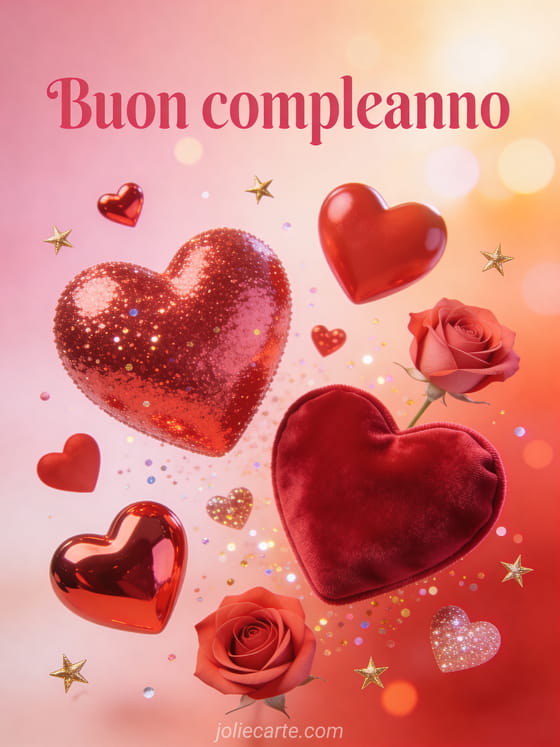 Condividi un augurio di compleanno pieno d'amore per la mamma con scritte rosa, cuori rossi e rosati, scintille dorate e un caldo bagliore romantico. Puoi scoprire anche un biglietto di biglietto di compleanno per la propria mamma, un biglietto di disegno facile per compleanno mamma o un biglietto di buon compleanno alla propria mamma.