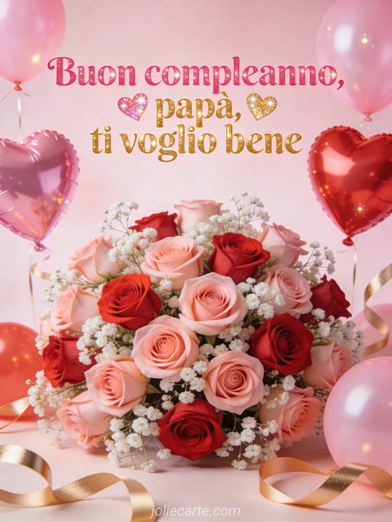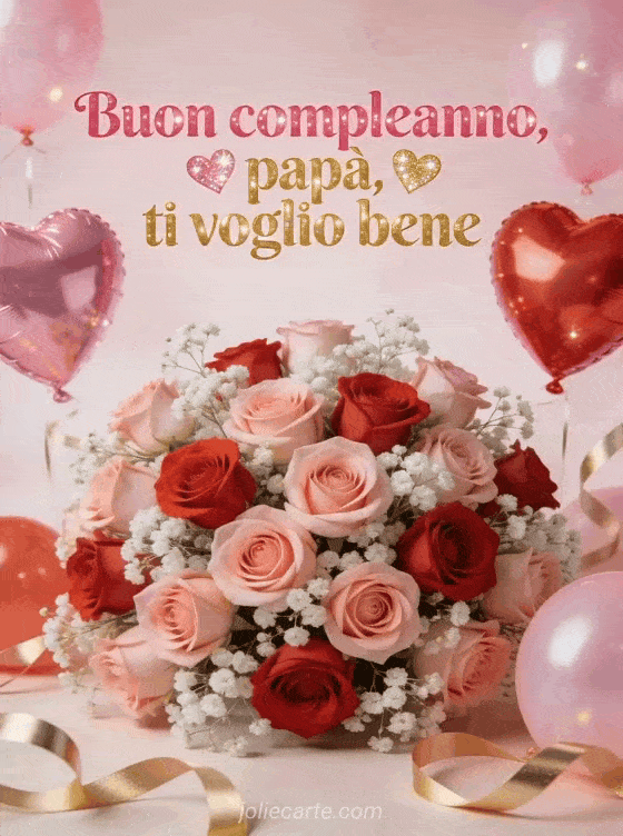 Invia un biglietto affettuoso di buon compleanno papĂ ti voglio bene, ricco di dettagli rosa e oro, rose, cuori scintillanti e atmosfera festosa. Scopri anche un buon compleanno papĂ disegno, un testo compleanno papĂ o un messaggio di compleanno per papĂ .