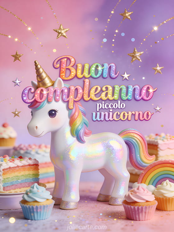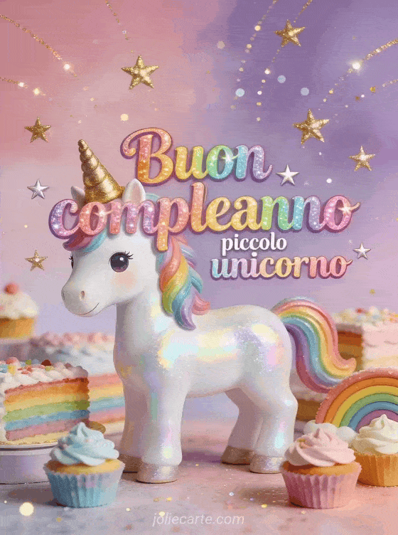 Delizia i più piccoli con questo magico biglietto con un adorabile unicorno iridescente in un mondo arcobaleno. Scopri anche una immagine buon compleanno neonato o uno striscione buon compleanno bambino.