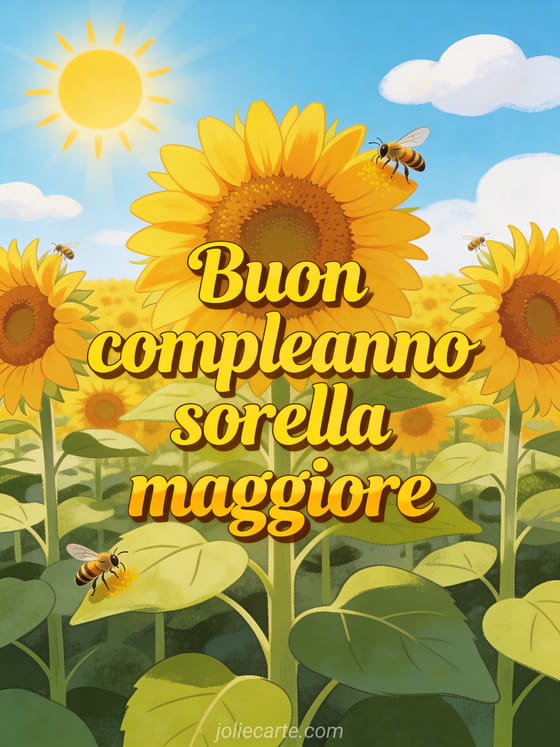 Condividi questo biglietto estivo e gioioso per tua sorella maggiore e rendi la sua giornata più luminosa. Scopri anche buon compleanno sorellina, messaggio compleanno sorella o buon compleanno sorella immagine.