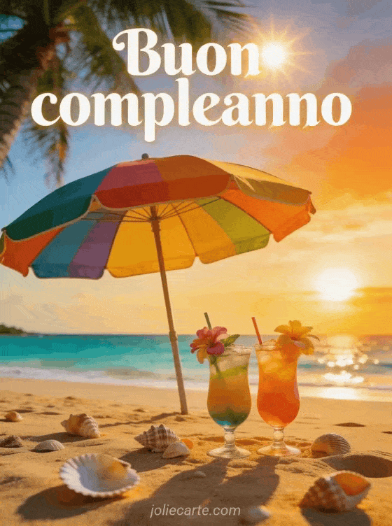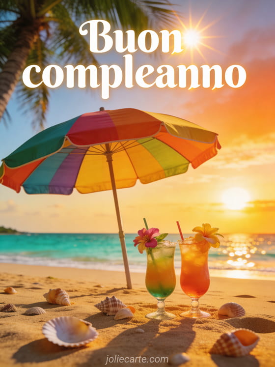 buon compleanno spiaggia sole Un augurio di compleanno luminoso con atmosfera tropicale.