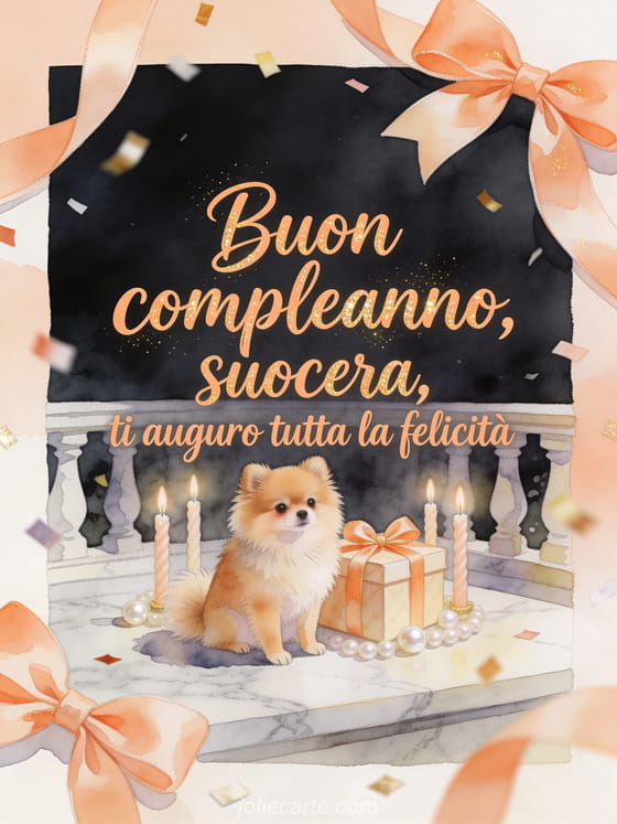 Invia un messaggio elegante di compleanno alla tua suocera con calligrafia albicocca, un lieve scintillio e una scena ad acquerello piena di charme. Scopri anche un biglietto buon compleanno mamma gratis, un buon compleanno mamma testo o un biglietto buon compleanno mamma.