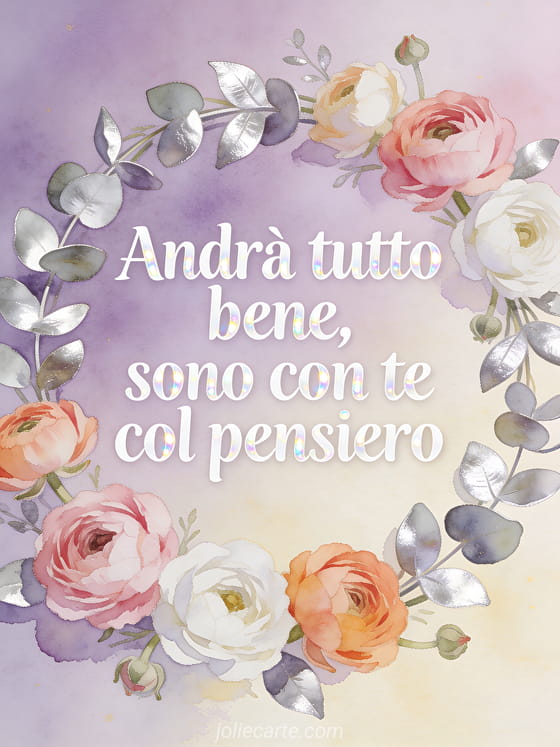 Invia un caldo messaggio rassicurante a chi affronta un'operazione. Questa delicata cartolina ad acquerello con una corona di ranuncoli e eucalipto trasmette i tuoi pensieri sinceri. Scopri anche una cartolina di coraggio per operazione, una cartolina di coraggio e pensiero o una cartolina di sostegno e coraggio.