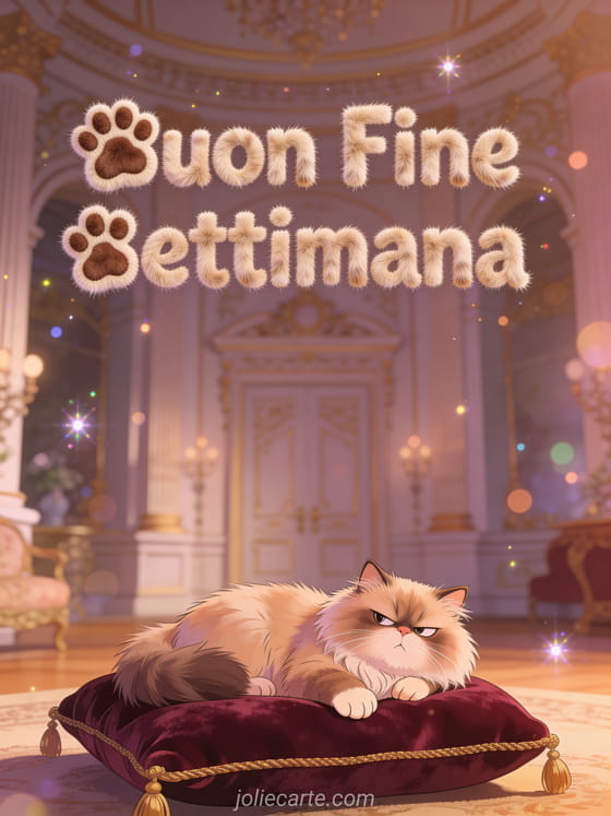 Buon Fine Settimana una divertente cartolina di buon fine settimana con un gatto regale