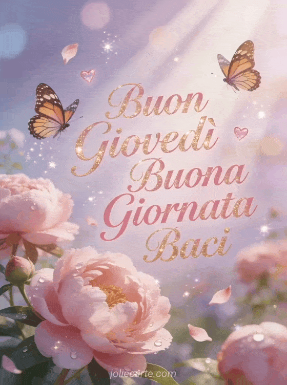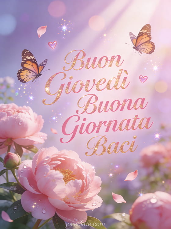 Buon giovedì buona giornata baci farfalle e peonie per un giovedì affettuoso