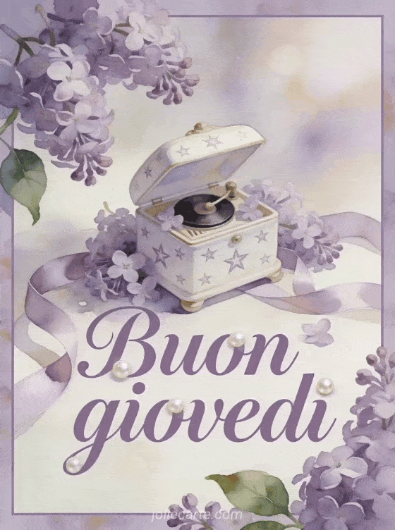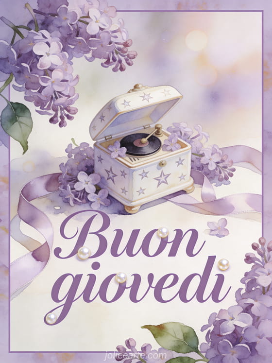 Augura buon giovedì con un carillon di porcellana, motivi a stella, fiori di lillà e nastri di raso in una morbida luce pastello ad acquerello. Puoi inviare anche buon giovedì pioggia, buongiorno buon giovedì e buona giornata o buon giovedì immagini di fiori.