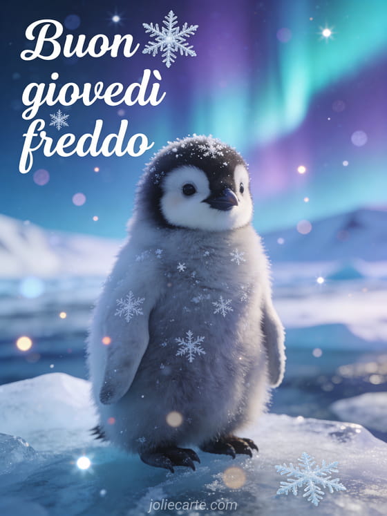 Condividi un caldo abbraccio invernale con questo adorabile saluto del pinguino del giovedì. Scopri anche un biglietto buongiorno buona giornata di giovedì o una immagine buon giovedì piovoso.