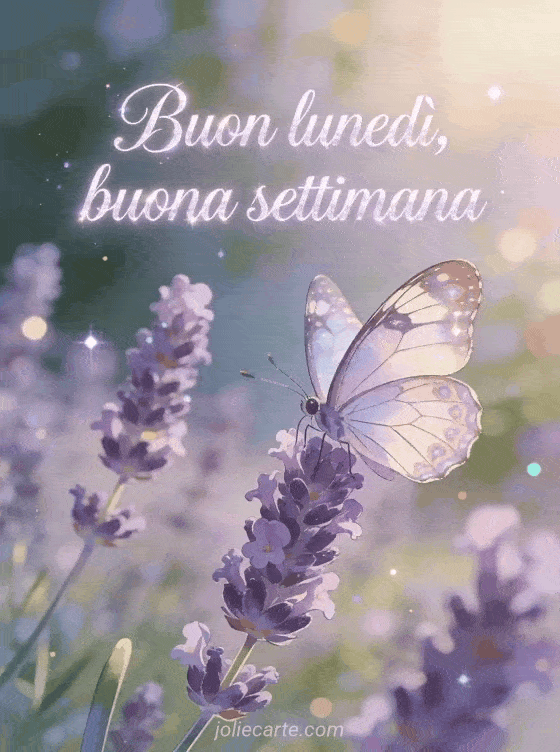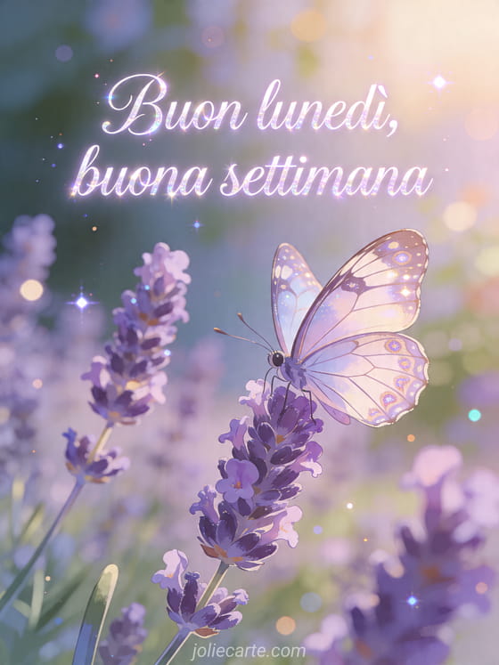 Invia un grazioso biglietto di Buon lunedì con una farfalla sui fiori di lavanda per iniziare la settimana con serenità. Scopri anche coraggio buon lunedì, bella immagine buon lunedì e sta piovendo buon lunedì sotto la pioggia.