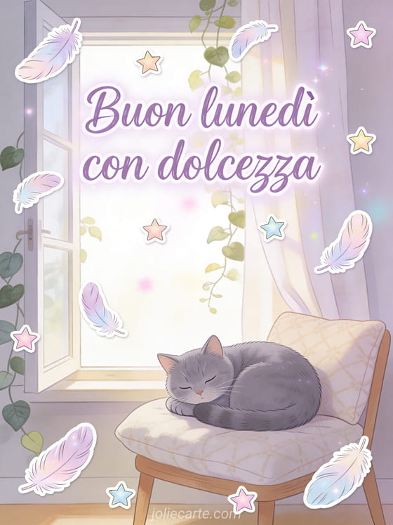 Buon lunedì con dolcezza un saluto dolce di lunedì con un gatto accogliente