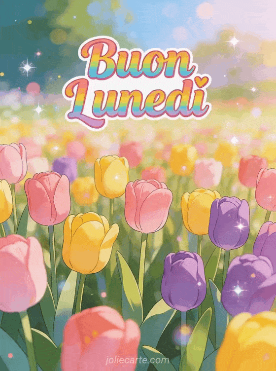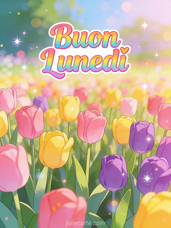 Condividi un vivace saluto del lunedì con colorati tulipani in piena fioritura. Scopri anche una buon lunedì buona settimana baci o una buon lunedì e buona settimana umorismo.