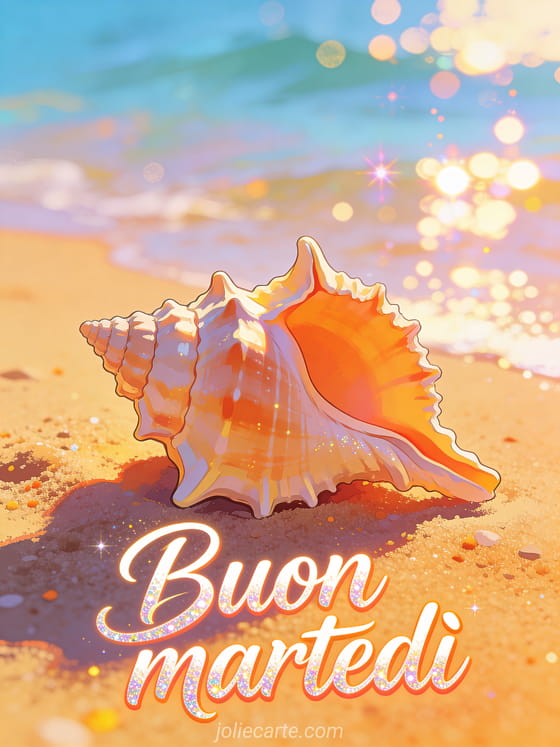 Condividi immagini di buon martedì per Facebook con calligrafia vivace, una conchiglia luminosa sulla sabbia calda e riflessi scintillanti del mare. Puoi inviare anche una buon martedì sotto la pioggia immagine, buon martedì gifs o un buon martedì sotto la pioggia gif.