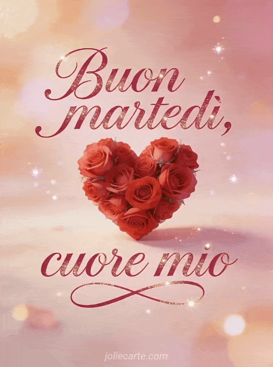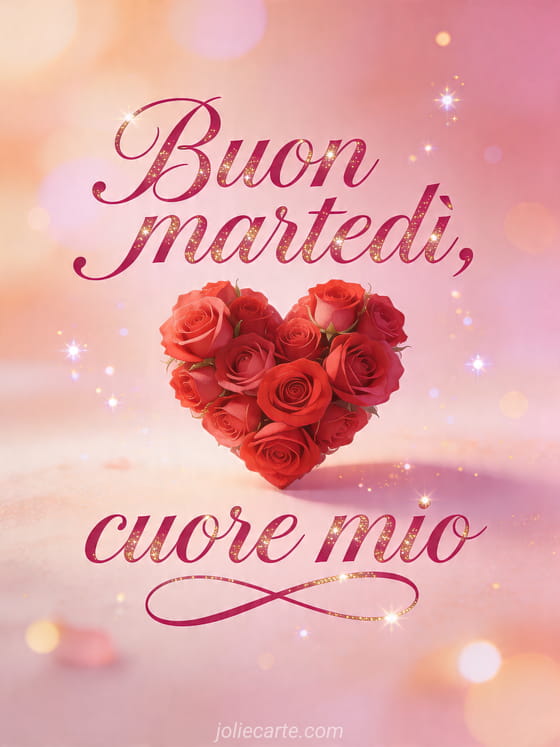 buon martedì, cuore mio un saluto romantico di martedì pieno di rose, amore e tenerezza