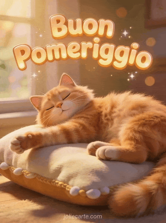 Invia un carino gif di buon pomeriggio con gatto per regalare un sorriso e un caloroso saluto pomeridiano. Scopri anche una cartolina buon pomeriggio, una buon pomeriggio divertente o una buon pomeriggio soleggiato.
